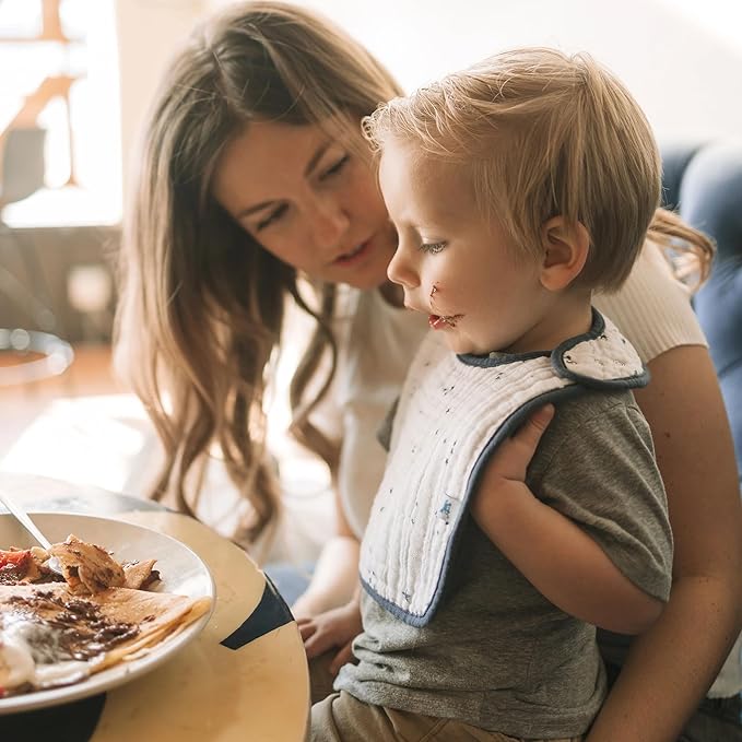- MEALTIME DROOL CATCHER: We make our bibs with 3 layers of highly absorbent, 100% cotton muslin. The thickness of these layers helps soak up Baby’s drooling and absorb spills, while keeping food off the baby during breakfast, lunch, and dinner.