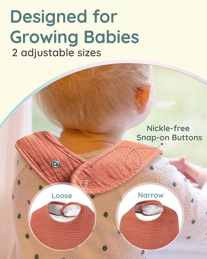 - Exquisite Craftsmanship: These soft muslin baby bibs are expertly crafted with fine stitching, your baby stays comfortable. They are breathable, irritation-free. These versatile bibs can also be used as burp cloths, baby bibs, washcloth, and wipe clothes, providing multi-functional utility