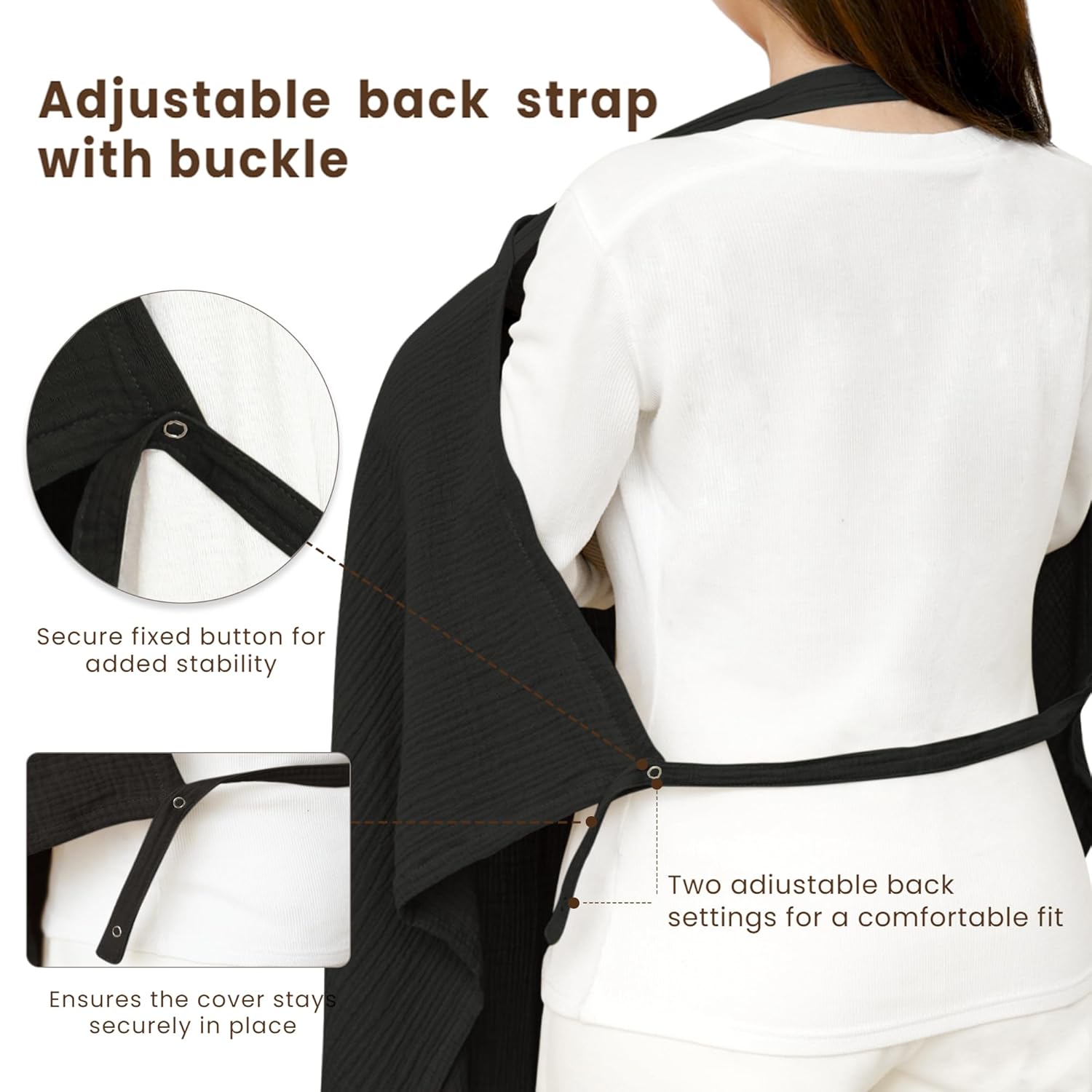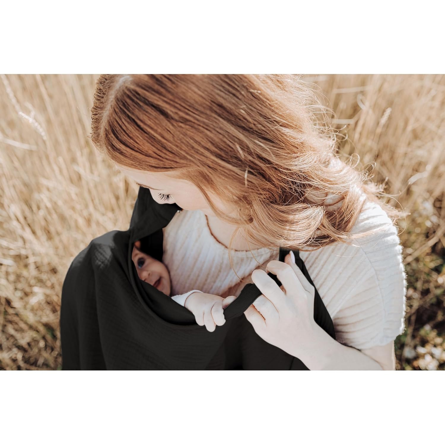 Konssy Muslin Nursing Cover for Baby Breastfeeding, Breathable 100% Cotton Breastfeeding Cover with Rigid Hoop for Mother Nursing Apron, Multi-use Carseat Canopy Canopy (Black)