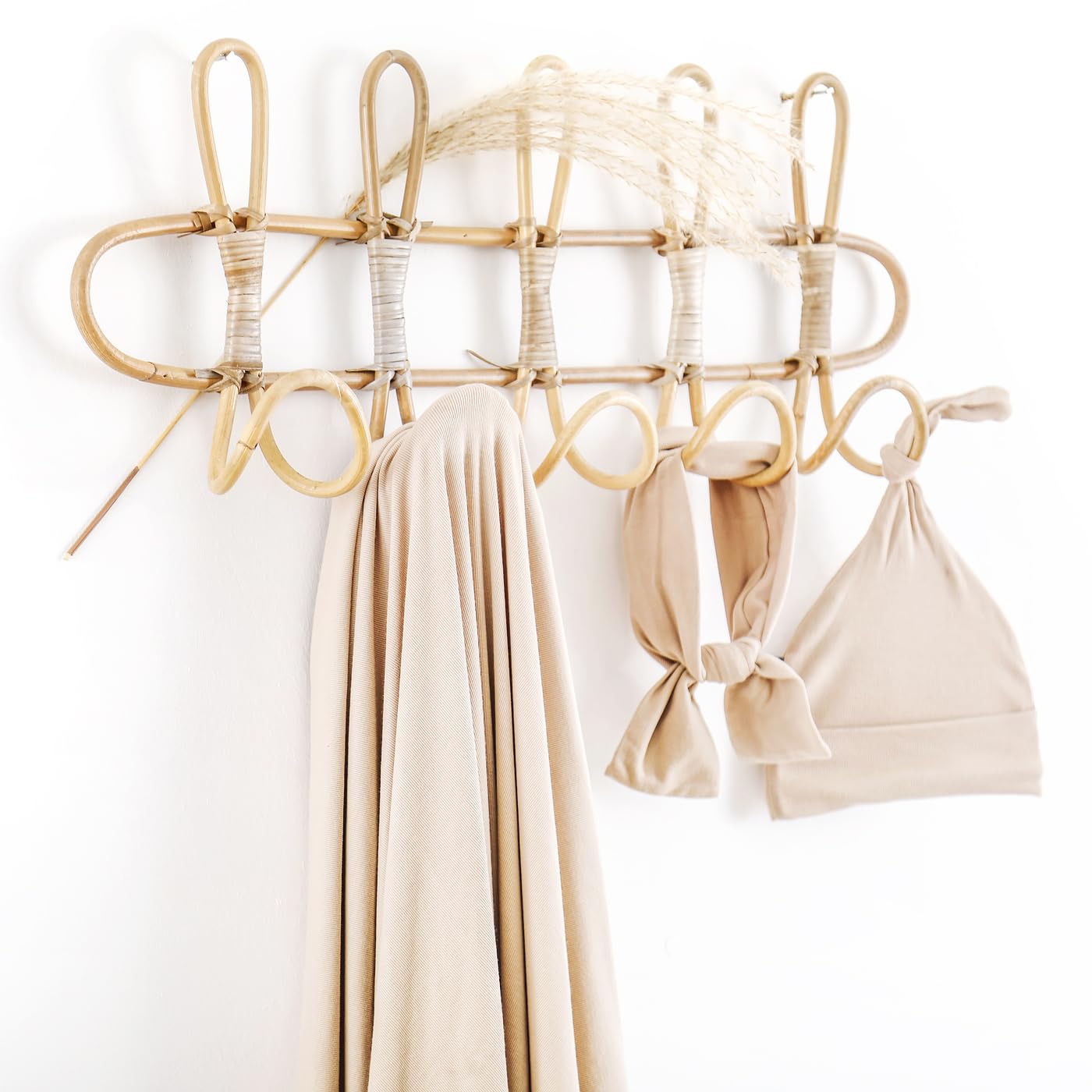 GRSSDER Newborn Swaddle Blanket, Ultra Soft Jersey Receiving Blanket with Matching Headband and Beanie Set 33×44", Stretchy Baby Neutral Swaddle Wrap for Girls and Boys