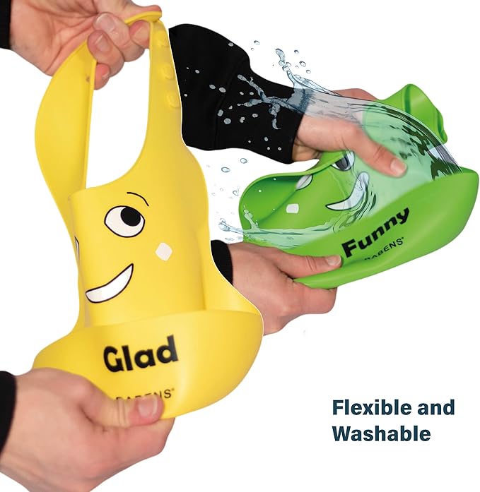 - [BUILDS DAILY ROUTINE WITH EMOTIONAL AWARENESS ] – Helps ease mealtime struggles by making emotion-based choices part of the routine. Children pick the FUNNY, GLAD, TIRED or UPSET bib depending on how they feel at this moment, creating structure and emotional connection.