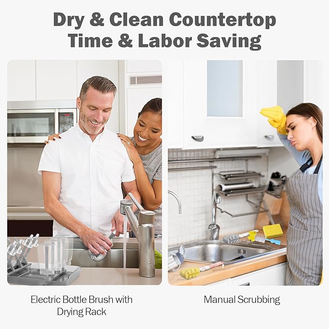 - 【Perfect for After Birth Mom】: Make life easier for new moms with our electric cleaning brush set. This travel bottle cleaner kit not only saves time and energy but also alleviates physical burdens and sore wrists caused by daily bottle cleaning. The perfect for new parents