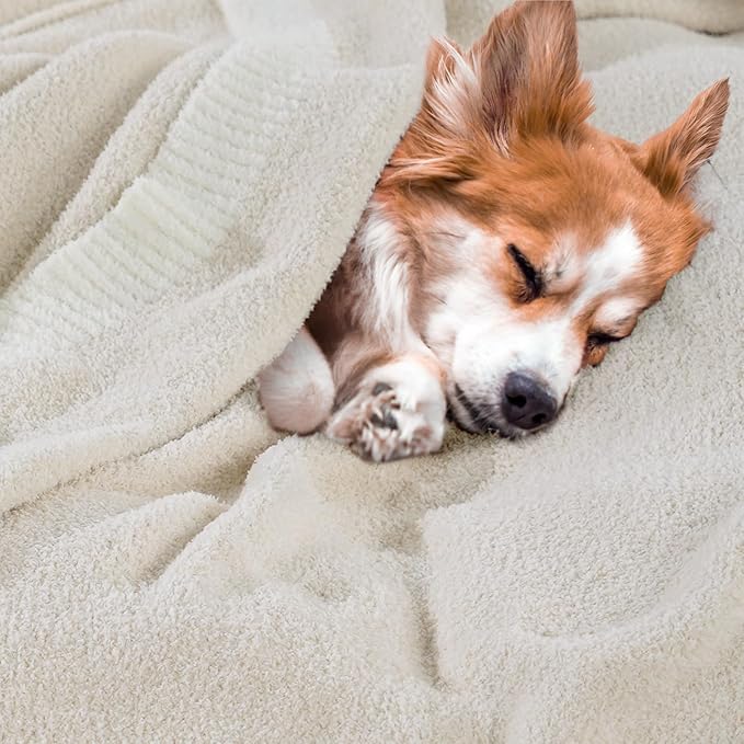 NNEXHOME PRO Soft Blanket for Women, Cozy Blanket Warm Reversible Knit Lightweight Throws for Sofa Bed, Picnic, Heather Ivory, Twin Size 60 x 80 inches