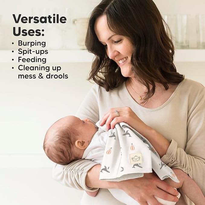 - Perfect for Home & Travel - This organic cotton burp cloths for baby is foldable into compact sizes to fit into your diaper bags. They are versatile as baby washcloths, burp rags, baby spit up rags, diaper changing mat, baby towel, and baby blanket.