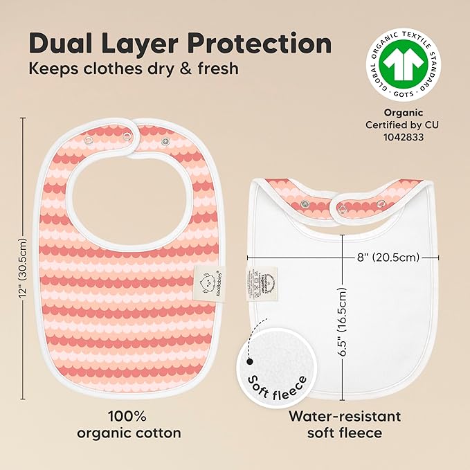 - Super Absorbent - Our organic baby boy and girl bibs are made with 100% organic cotton (GOTS-certified) and backed with water resistant fleece for added absorption. This dual layer design helps to keep your baby clean and fresh all day long. Suitable for newborns, infants, toddlers, heavy droolers and teething babies.