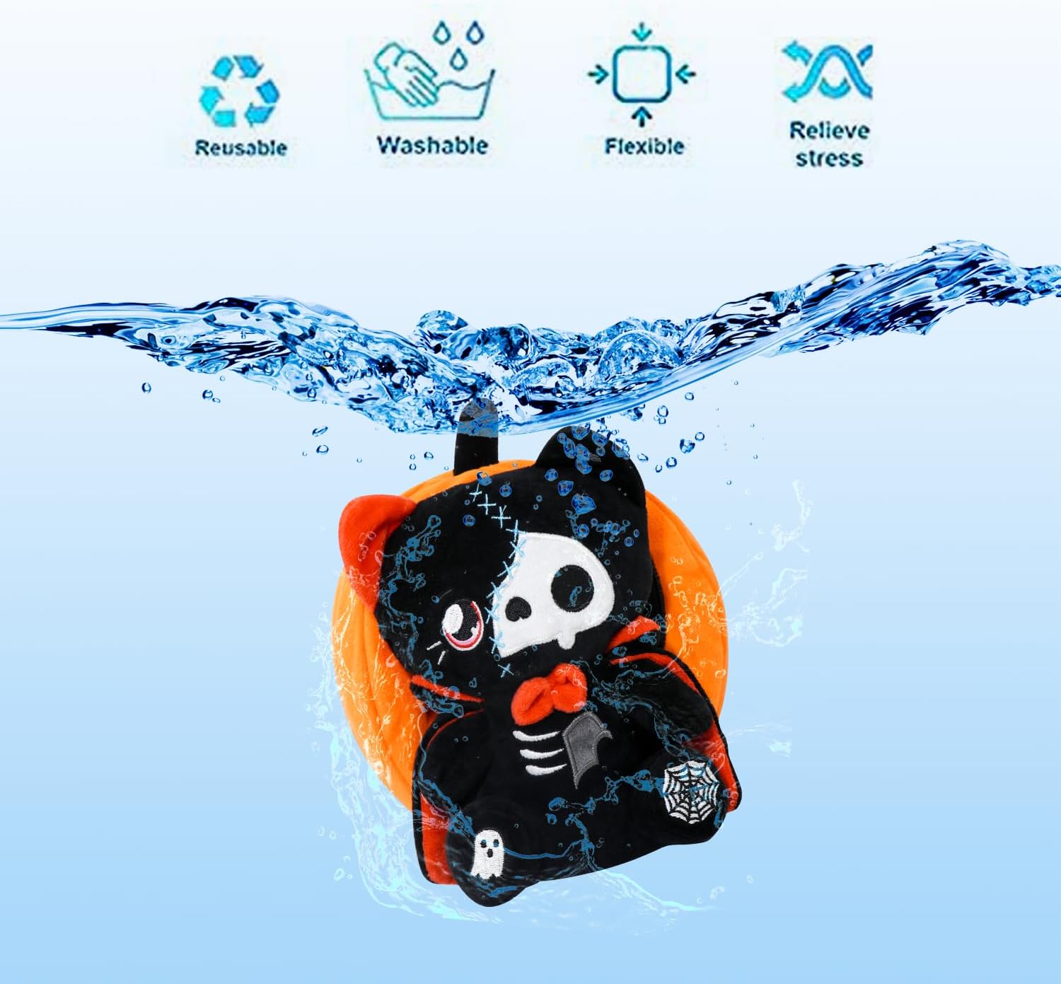 - 【Halloween Reversible Black Cat Material】Halloween Changeable Black Cat Plush: It's easy to go from a Pumpkin to a white Skeleton Black Cat,or from a Skeleton Black Cat to a white Pumpkin, just by opening the zipper. This Halloween Black Cat Plush is made of high-quality plush,and the inside is filled with high-quality PP cotton,this plush toy is incredibly soft and huggable.