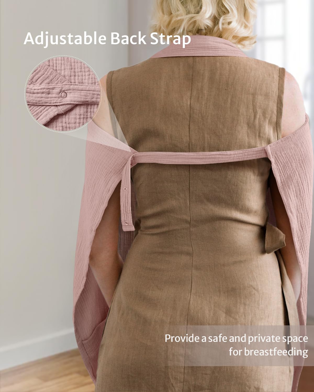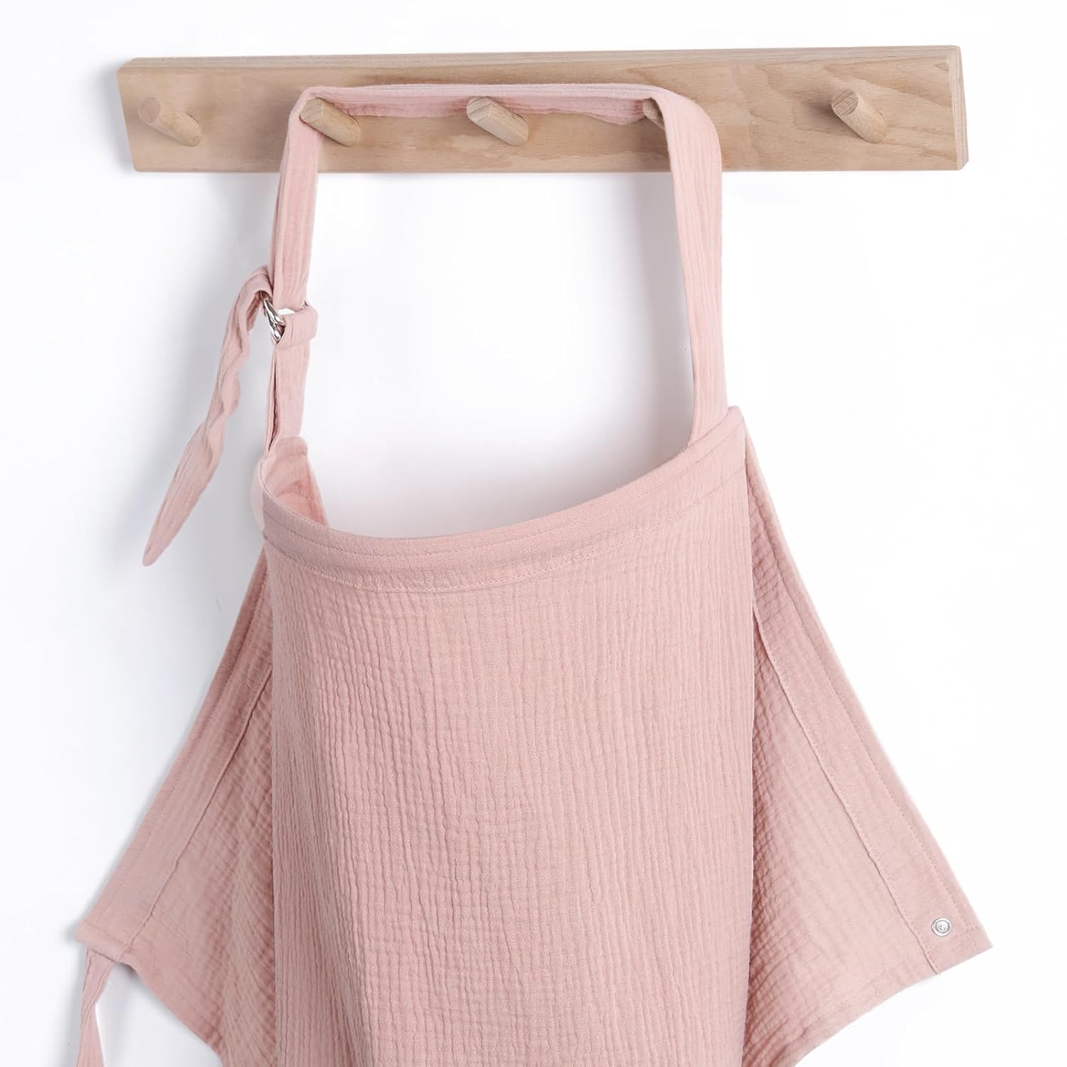 Blissful Diary Muslin Nursing Cover for Breastfeeding, Breathable Breastfeeding Cover up with Arch Neckline for Women, Nursing Apron(Pink)