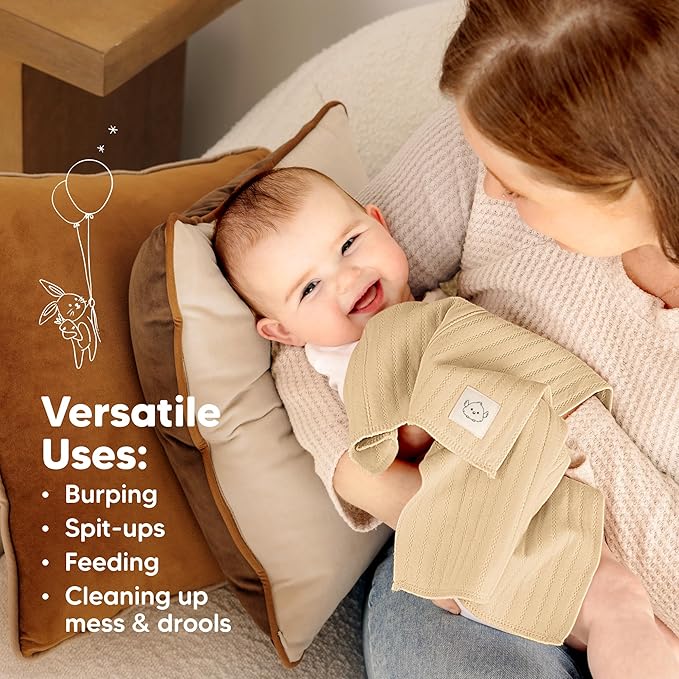 - Durable - Our machine washable & dryable burping cloths for babies are intricately made for everyday use. Loved by modern parents for their lasting quality, the colors, softness & absorbency of these baby essentials remain even after multiple washes.