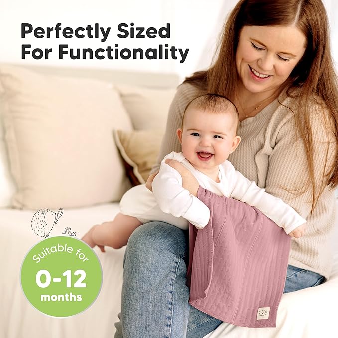 KeaBabies Organic Cotton Burp Cloths Baby Girl, Boy - 6-Pack Large Burping Clothes for Babies, Spit Up Rags, Super Soft & Absorbent Newborn Wash Towels, Gender Neutral, Non-Shrink (Stria, Mauve)