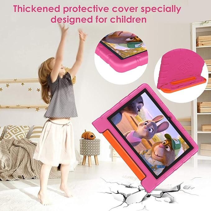 2025 Kids Tablet 10 inch Android 14 Tablets for Kid Octa-Core, 20GB+128GB (TF 1TB), Toddler Tablet with Shockproof Case, 2.4G+5G WiFi 6, Parental Control, Face Unlocked, Split Screen, BT5.0 (Rose Red)
