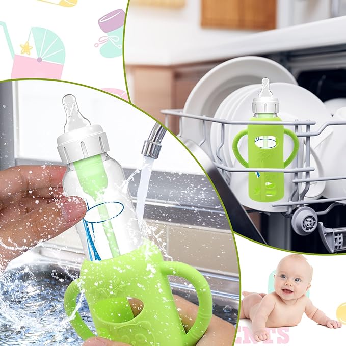 - Unique Designed for Baby Bottles - The silicone sleeves for Dr. Brown's Baby Bottles can against drop down,bumps and scratches. These are a must essential product for using glass baby bottles. They provide a more sturdy protection for glass baby bottle from breaking if dropped, which also unique handle design shape make it easier to grip and hold