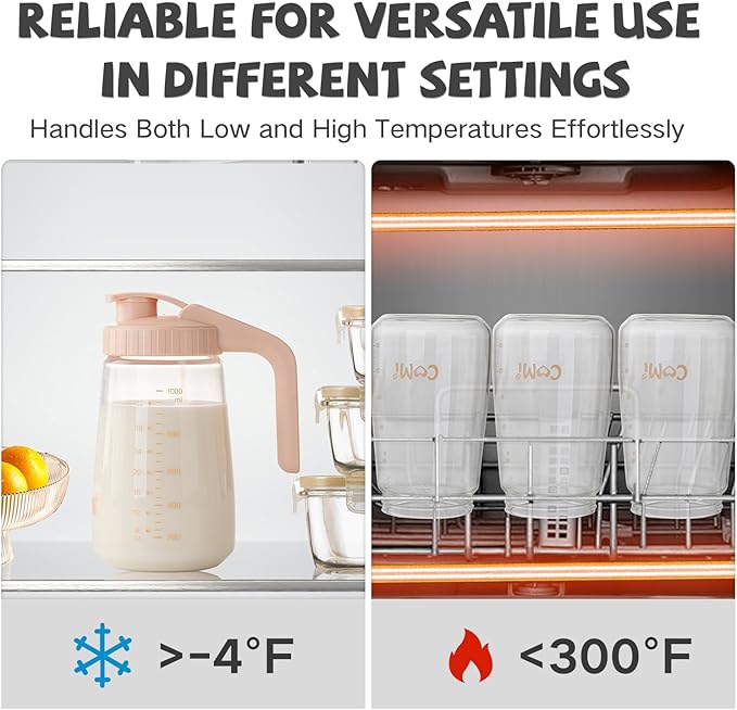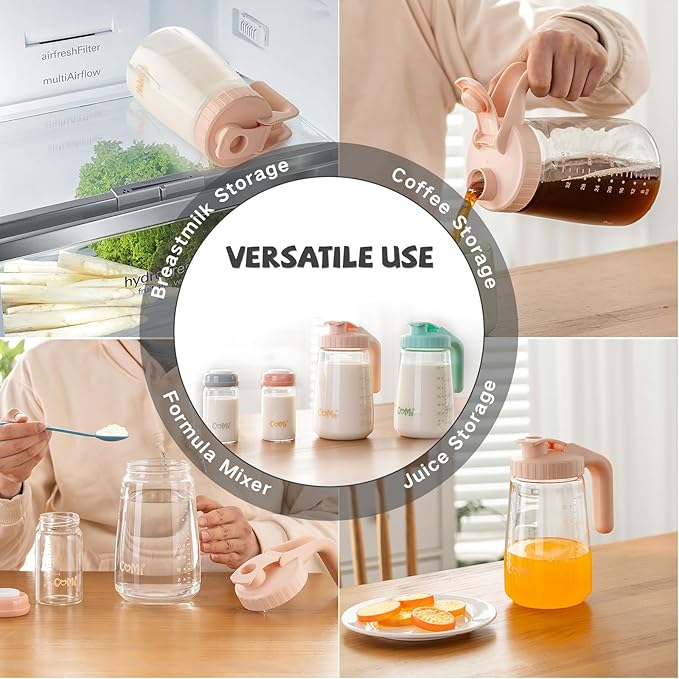 - Safe and Durable:Made from advanced borosilicate glass, the COMI breast milk pitcher withstands temperature changes, great for refrigeration, microwave use, and sterilization.