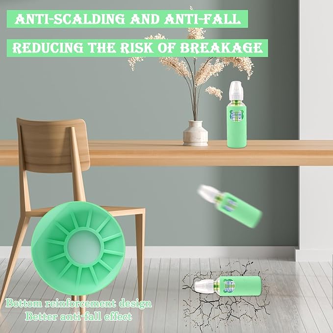 - Thermal Insulation: Silicone baby bottle holder also help insulate the glass bottle, facilitate removal from in the heater, and maintain the temperature of the milk longer than if the bottle was sleeveless.