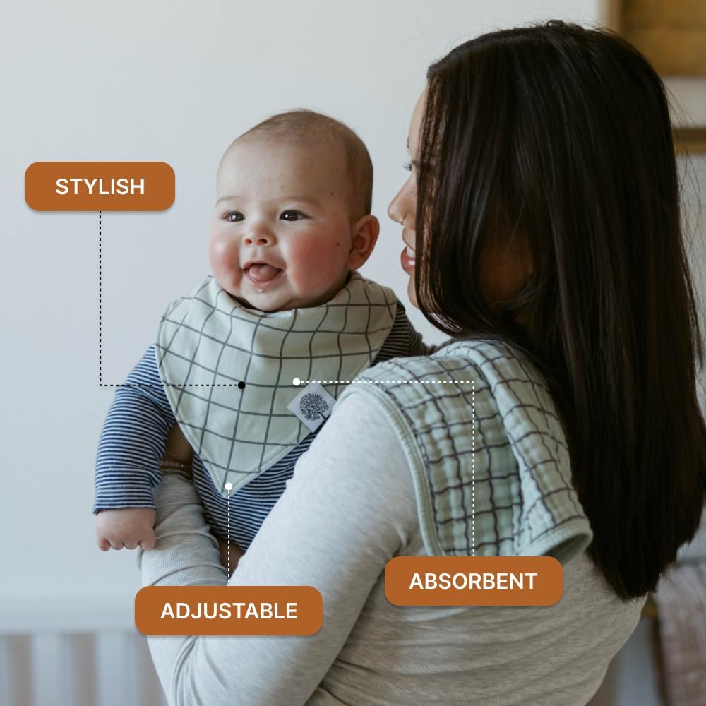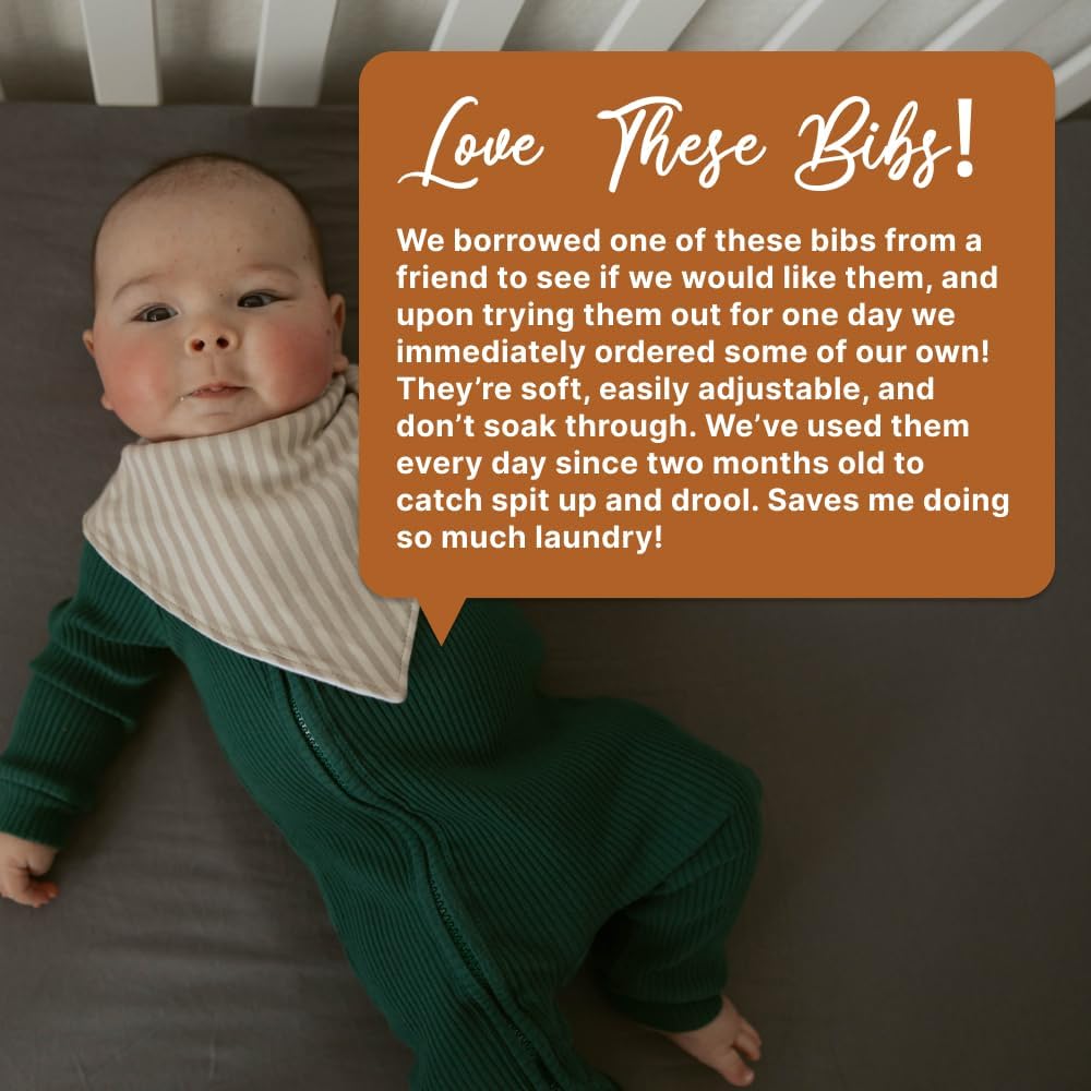 - SUPER SOFT, ABSORBENT & MESS-READY β Made with 100% cotton on the front and soft, absorbent polyester backing, these bibs catch drool, spit-up, and food messes, keeping baby dry, comfortable, and stylish all day long.
