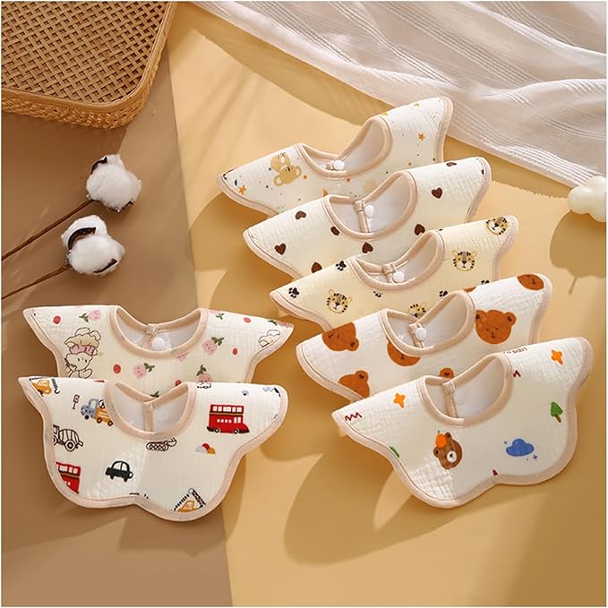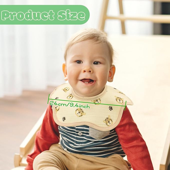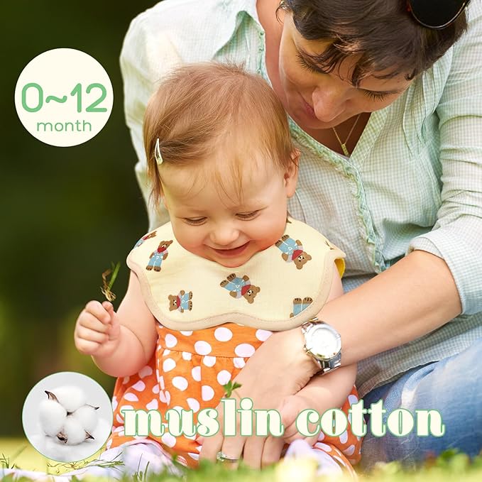 - Perfect for Drooling, Feeding, and Teething:Designed with highly absorbent Muslin cotton, these baby bibs are perfect for babies who drool, feed, and teethe. The bibs effectively soak up excess moisture, keeping your baby dry and comfortable. Air-drying is recommended to maintain the bibs' softness and extend their lifespan. Keep your baby stylish and dry throughout the day with these must-have baby bibs.