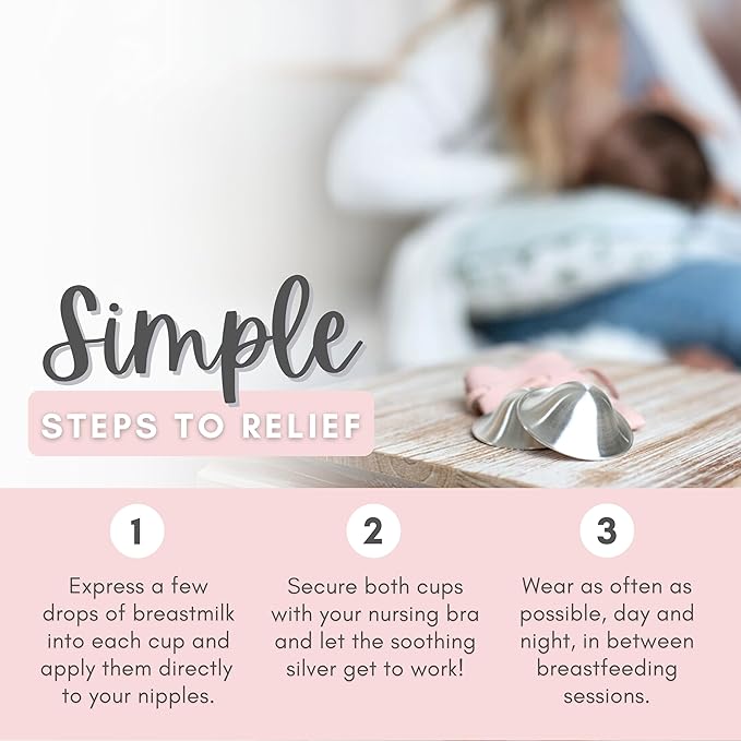 - Effortless Application: Express a few drops of breastmilk into the nipple silver cups for breastfeeding, secure them with your nursing bra, and wear between feeds. Enjoy silverās natural healing and enhanced comfort on your breastfeeding journey!