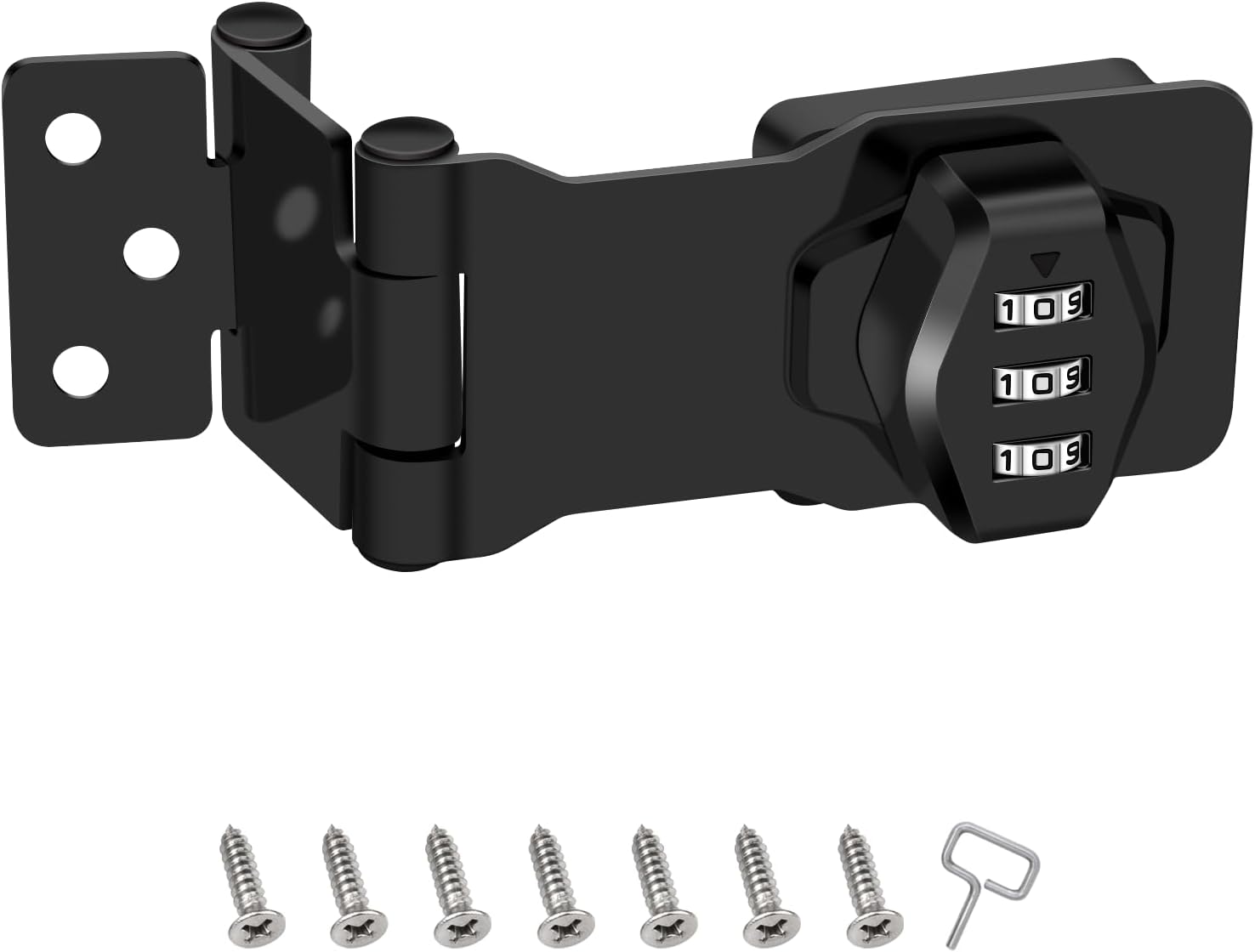 1 Pack Password Rotary Hasp Locks, Collapsible Solid 304 Stainless Steel File Cabinet Lock Desk Drawer Lock, for 90 Degree and 180 Degree Drawers, Dabinets, Doors, Flip Barn Door, Outdoor (Black)