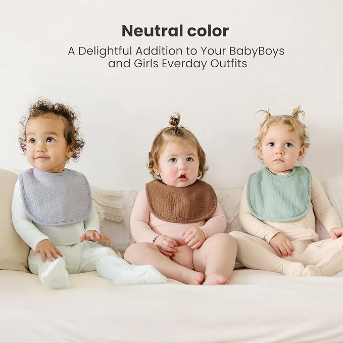 • Soft & Absorbent: These baby bibs are made with a 100% cotton muslin front and a polyester comfort fleece back for superior absorbency and a soft, skin-friendly feel. They effectively soak up drool and spit, keeping both you and your baby clean and dry-no more wet clothes
