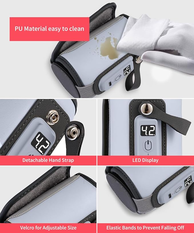 - 【High-Quality Materials & Easy Maintenance】The inside is made of high-quality polyester that gently holds the baby bottle. It is finely stitched to prevent tearing, even with repeated use. The exterior is made of PU material, which can be easily wiped clean if it gets dirty. (*Please avoid washing the unit with water to prevent malfunction.)
