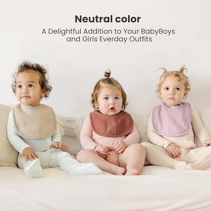 - Soft & Absorbent: These baby bibs are made with a 100% cotton muslin front and a polyester comfort fleece back for superior absorbency and a soft, skin-friendly feel. They effectively soak up drool and spit, keeping both you and your baby clean and dry-no more wet clothes
