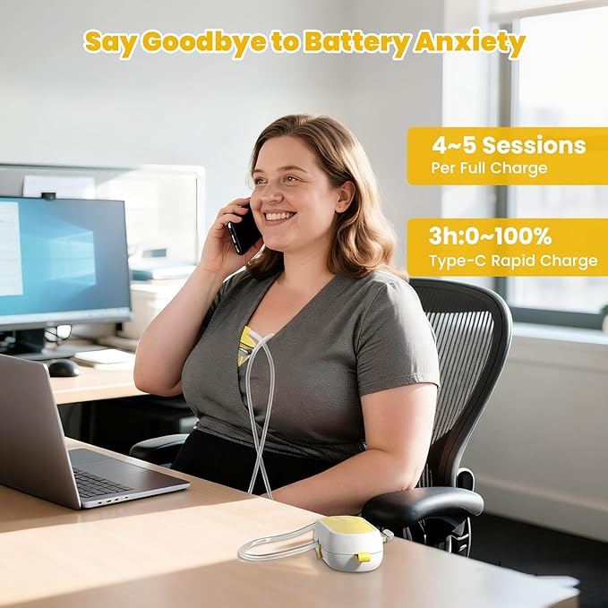 - 【Long-Lasting Battery & Portability】With up to 3-4 full pumping sessions at maximum suction strength per charge, this pump easily covers 1-2 days of typical use. Its compact design and reliable battery make it perfect for home, work, or travel—no outlets needed.