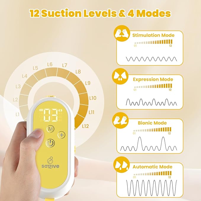 - 【Light Weights Hidden & Portable Pump】The Saglve Hands-Free Breast Pump features an ultra-lightweight milk collector (only 0.17lb per cup) that discreetly fits inside your bra, with intuitive LED screen button control for effortless operation. Pump comfortably anywhere—no bulky motors, no spills, just silent freedom. Perfect for busy moms who need discretion and mobility.