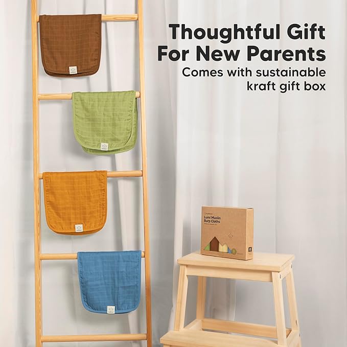 - Beautiful Neutral Palettes - The Lumi Muslin Burp Cloths are designed with gender neutral palettes for baby boys and girls. It is the perfect baby shower gift and baby registry gift for new parents. Comes with sustainable kraft gift box.