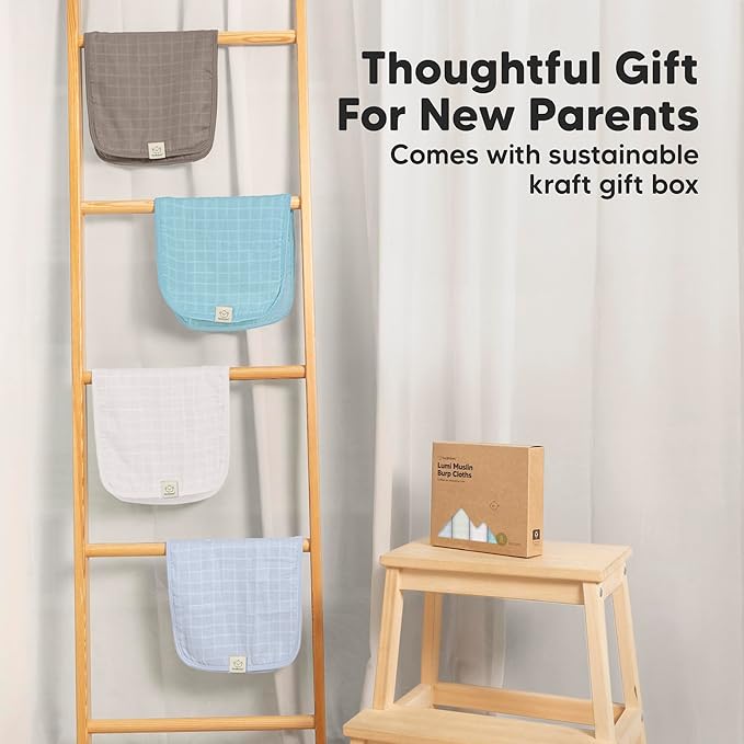 - Beautiful Neutral Palettes - The Lumi Muslin Burp Cloths are designed with gender neutral palettes for baby boys and girls. It is the perfect baby shower gift and baby registry gift for new parents. Comes with sustainable kraft gift box.