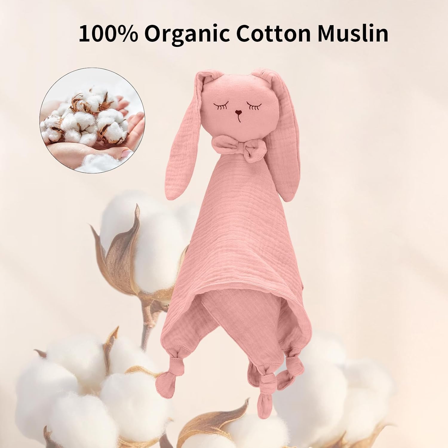 Easter Basket Stuffers, Organic Cotton Muslin Bunny Loveys for Babies Baby Security Blanket Baby Snuggle Toy Newborn Essentials Must Haves(Rabbit-Pink)