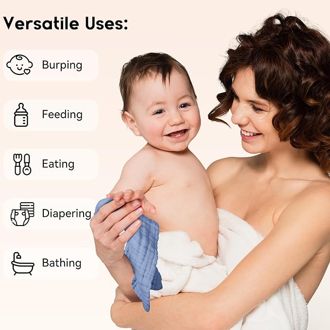 - Verstile Baby Essentials: Designed with a gender-neutral color, our muslin washcloths will be a thoughtful present for any occasion like baby shower, baby registry, birthday, or you can use it as baby face towels, hand towels, baby wipes, burp cloths, sweat cloths, even makeup removers. A must-have for teething baby and mess no more.