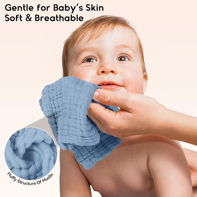 - Prioritize Safety: Made of 100% natural cotton to guarantee the utmost comfort and soft, Unnivoll muslin baby washcloths have passed CPSC certification, ensuring safety for infant's delicate skin, providing a worry-free experience for you and your little one. Rest assured in your selection.