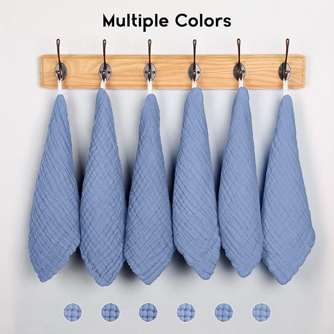 Muslin Baby Washcloths 6 Pack, 100% Cotton Wash Cloths for Babies, Large 12''X12'' Burp Cloths Absorbent and Soft for Newborn Infants Kids Boys Girls - Sapphire Blue
