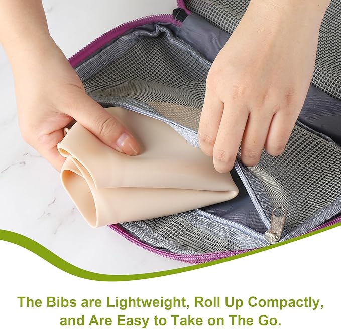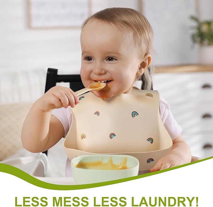 - Safe Material: Made of 100% food-grade silicone. This baby feeding bib is PVC-free, BPA-free, Phthalates-free, and Vinyl-free.