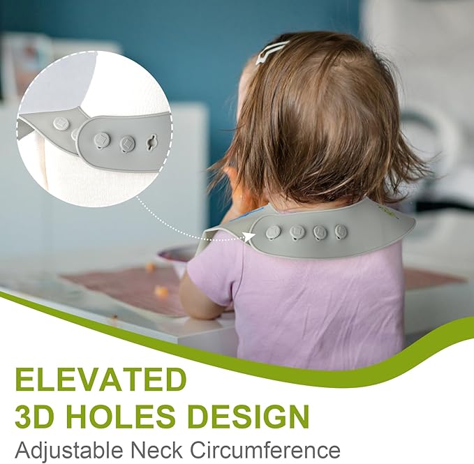 • Adjustable Closure: The neck strap feature adjustable buttons. These baby silicone bibs suitable for babies and toddlers ages 3-24 months.