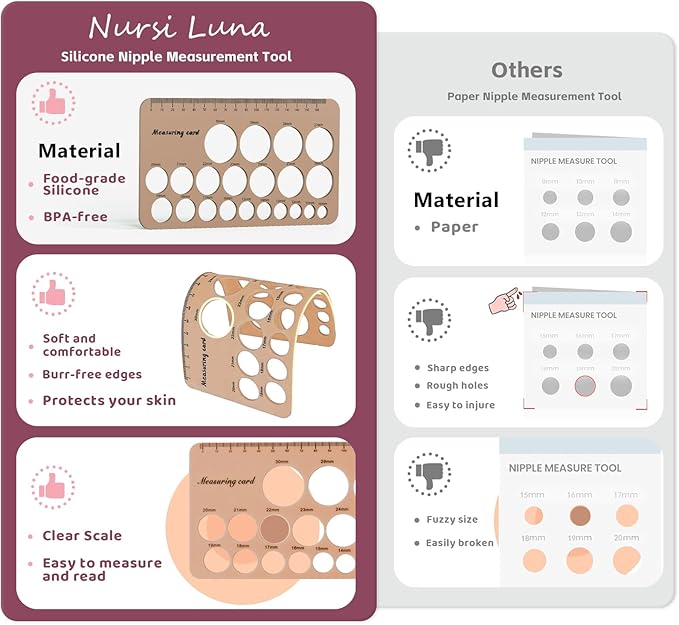 - Getting The Right Flange Size: Nipple size can change during different breastfeeding stages, requiring adjustments for optimal comfort. Our nipple ruler based on IBCLC recommendations, provides precise sizing to ensure a perfect fit and efficient pumping
