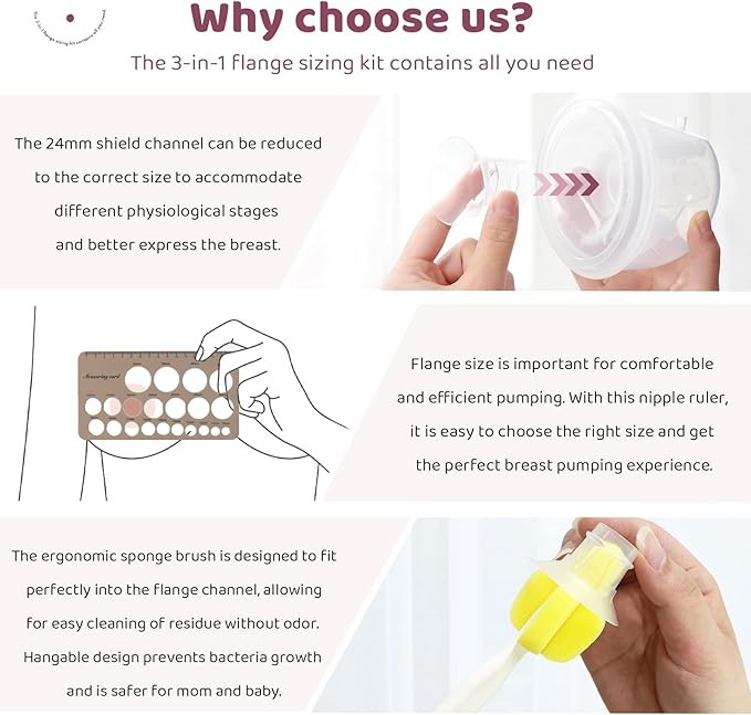- Essential for New Moms: Nursi Luna Flange Sizing Kit 3 in 1, developed by an IBCLC (International Board Certified Lactation Consultant), enhances comfort and pumping efficiency for new moms, addressing common confusion and discomfort during breastfeeding.
