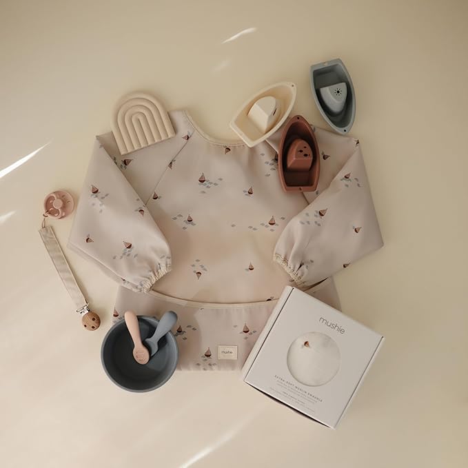 • Mess & Worry Free: Keep the kids clean at mealtimes, during art projects or in other messy moments with the mushie water resistant long sleeve bib.