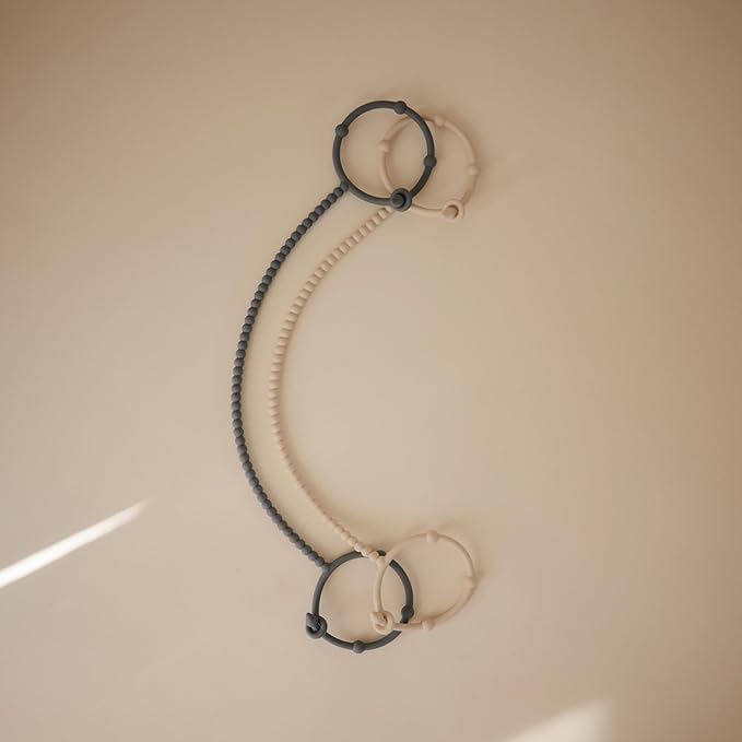 mushie Adjustable Silicone Toy Straps 2-Pack | Baby Accessories Holder for Travel, Stroller, High Chair (Tradewinds/Shifting Sand)