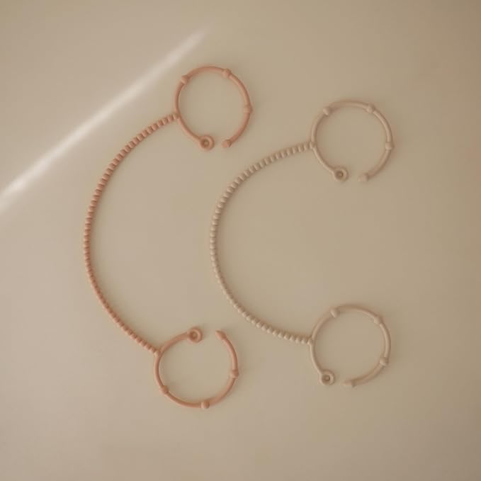 mushie Adjustable Silicone Toy Straps 2-Pack | Baby Accessories Holder for Travel, Stroller, High Chair (Blush/Shifting Sand)