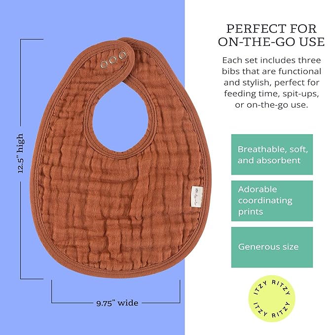 - SOFT & ABSORBENT: Say goodbye to messy mealtimes with our Itzy Ritzy baby bibs! Crafted from 100% cotton muslin, these triple-layer muslin bibs are ultra-soft, super absorbent, and designed to catch every droplet. Your little one will stay comfortable and dry, making feeding time a breeze!