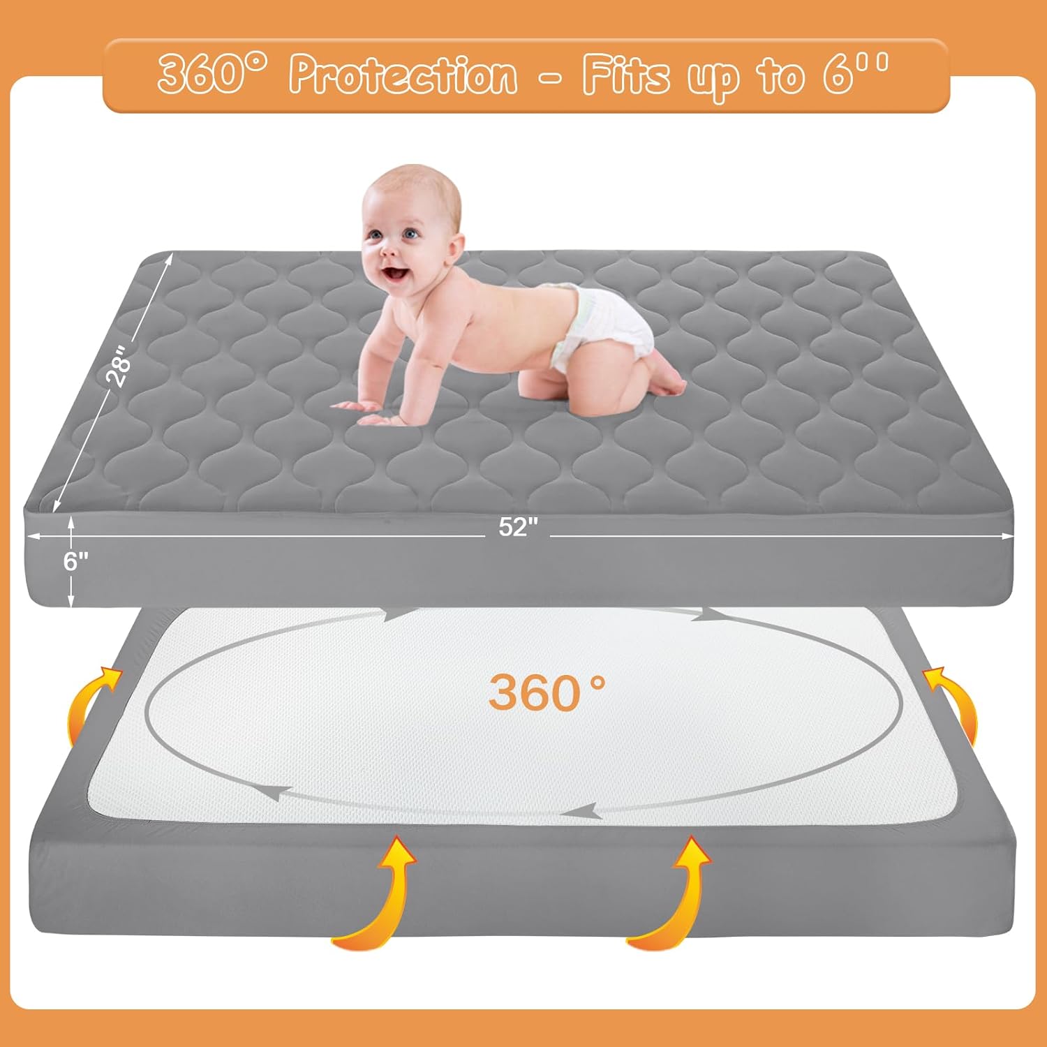 - Flexible Fit: Measures 52''x28'', designed specifically to fit standard crib. Deep pockets make sure the mattress cover universal fit mattress up to 6 inch thick.