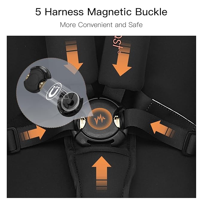 - Comfortable & Adjustable: The extra-wide seat of the baby stroller offers ample space for your child to move comfortably; The seat has good enough padding with a 5-point harness strong metal buckle seatbelt; Features a little push-to-slide button at the back of the travel stroller for a easy adjust the seat inclination; You can also make a corresponding adjustment to the footrest for the most comfortable position