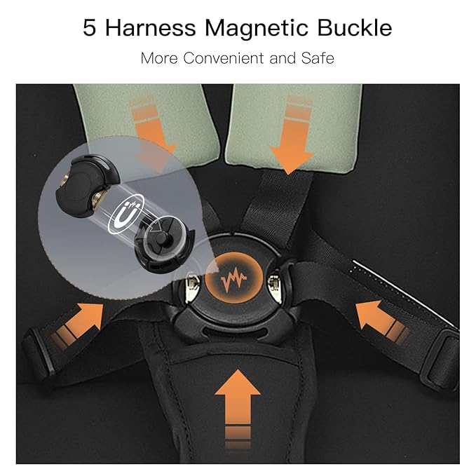 - Comfortable & Adjustable: The extra-wide seat of the baby stroller offers ample space for your child to move comfortably; The seat has good enough padding with a 5-point harness strong metal buckle seatbelt; Features a little push-to-slide button at the back of the travel stroller for a easy adjust the seat inclination; You can also make a corresponding adjustment to the footrest for the most comfortable position