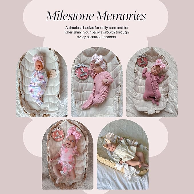 - LEAF-SHAPED LINER FOR UNFORGETTABLE MILESTONE PHOTOS - a luxurious design that is unique to Bebe Bask makes this changing table basket an ideal baby photo props for making memorable baby photos. Softly cushioned cotton and machine washable