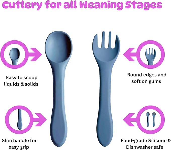 - SOFT MATERIAL TEXTURE - The baby bib, fork, and spoon are made from carefully selected materials for their soft and pleasant texture. Adapted to highly sensitive skin, gentle contact on the body and no irritation. Your baby can enjoy mealtimes with unmatched comfort.