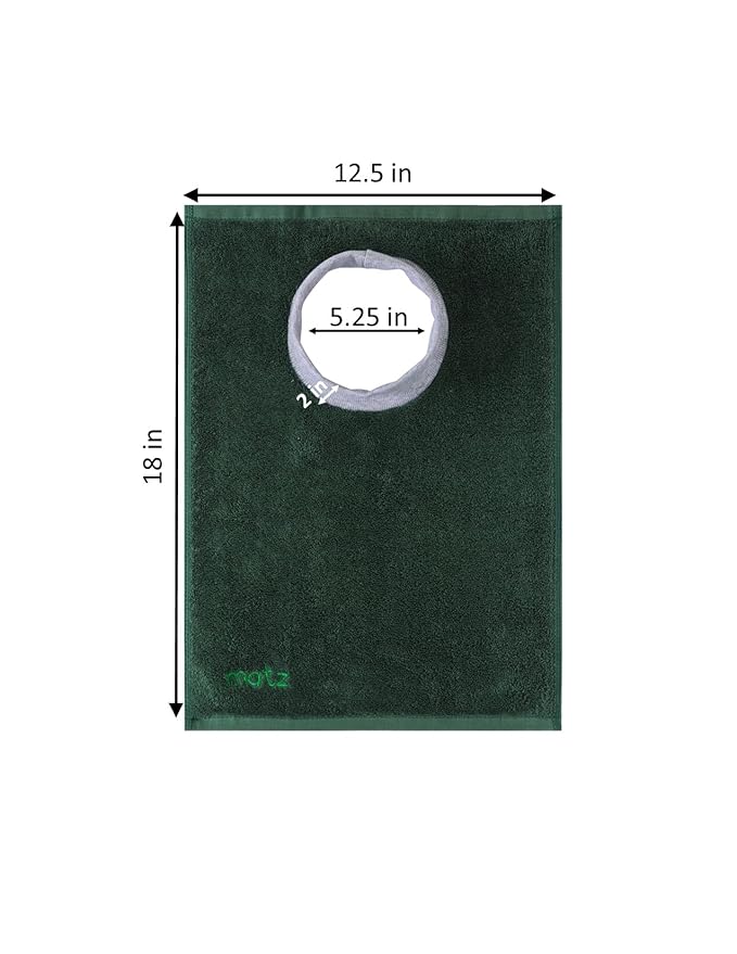 - Matz Mini - This is the same as the original standard size, just with small exterior dimensions. Towel quality and neck hole size is the same. Exterior dimensions: L 18" W 12.5" (Unlike Standard Size Exterior Dimensions: L 22.5" W 15.5")