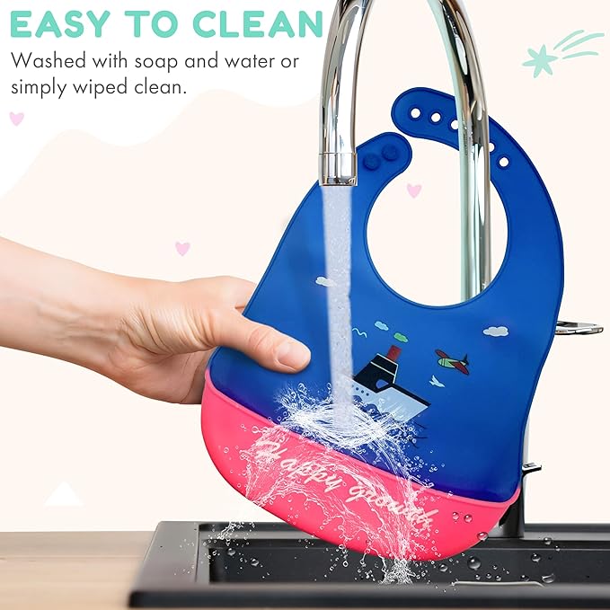 - ♻ Versatile: Soft, flexible silicone bibs suitable for babies and toddlers during mealtimes.