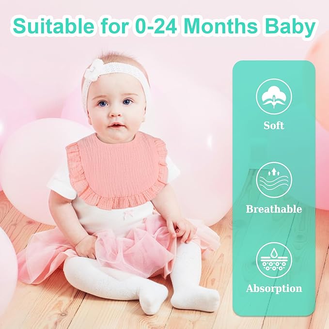 - 100% Cotton: These muslin baby bibs are made of 100% muslin cotton, super soft, breathable and comfortable for baby's delicate skin.