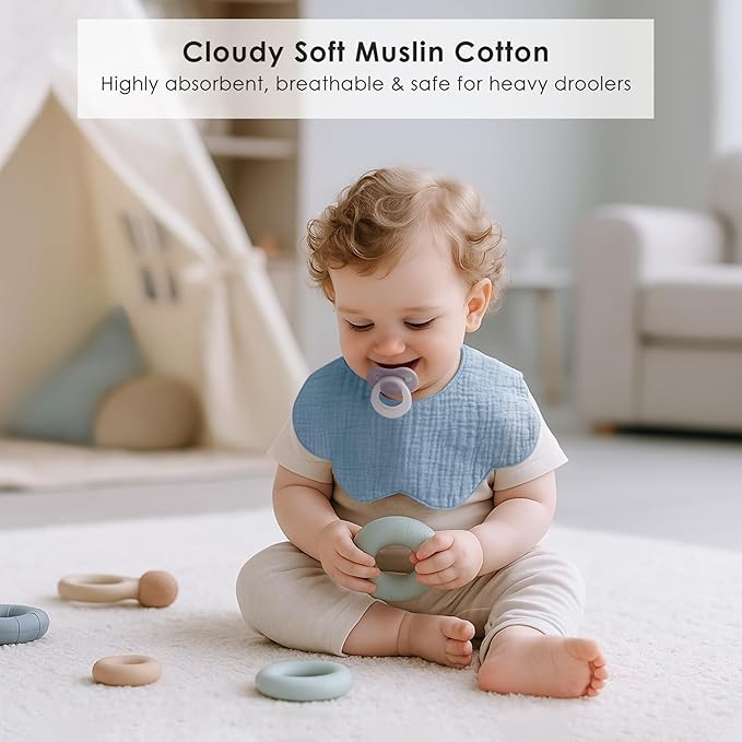 - 6 Colors in One Set:: This set includes 6 muslin bibs in different stylish colors, making it an ideal baby gift and a practical gift for baby showers, baby registries, Christmas, one year olds, or any special occasion or time