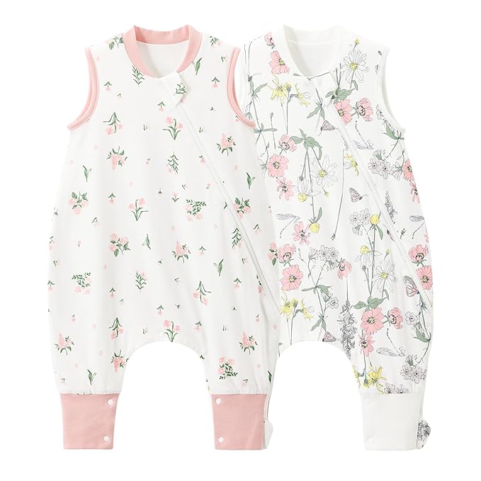 Duomiaomiao 2 Pack 0.5 TOG Toddler Sleep Sack 36-48 Months 100% Cotton Lightweight Baby Sleep Sack with Feet, Breathable Comfy Toddler Wearable Blanket